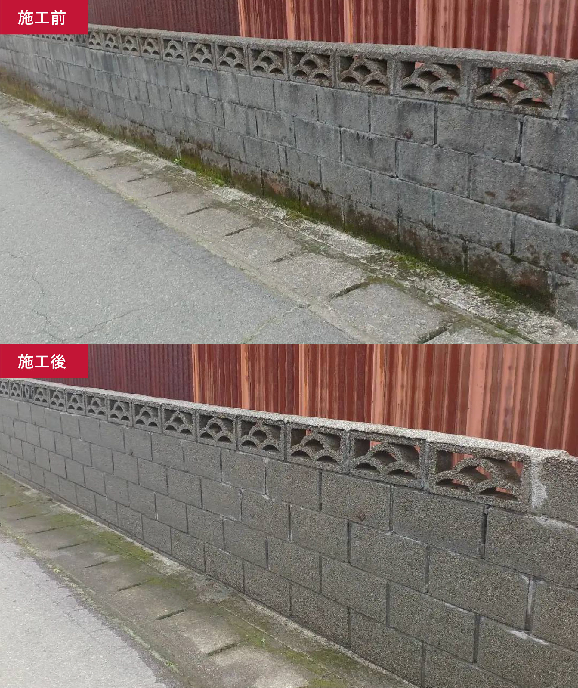 塀の汚れ方がひどいため、ご依頼をいただきました。